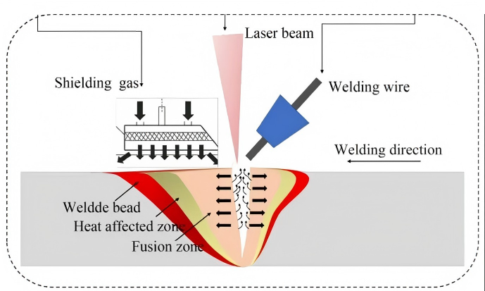 వైర్ ఫీడింగ్ వెల్డ్ వేడి-ప్రభావిత జోన్ను తగ్గిస్తుంది మరియు వక్రీకరణ మరియు అవశేష ఒత్తిడిని తగ్గిస్తుంది, ఇలోతైన వ్యాప్తిని కలిగిస్తుంది మరియు tఫిల్లర్ వైర్ వెల్డ్ మెటల్ యొక్క సూక్ష్మ నిర్మాణాన్ని మెరుగుపరచడంలో సహాయపడుతుంది. (వైర్ ఫీడింగ్ వెల్డ్ నమూనా సూచనగా)