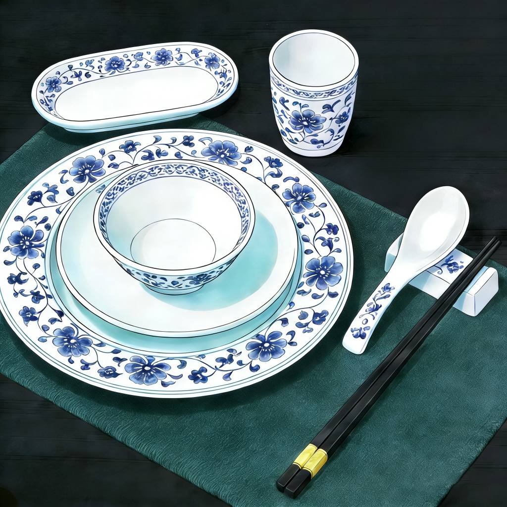 క్రింద ఉందినీలం మరియు తెలుపు పింగాణీటేబుల్వేర్.